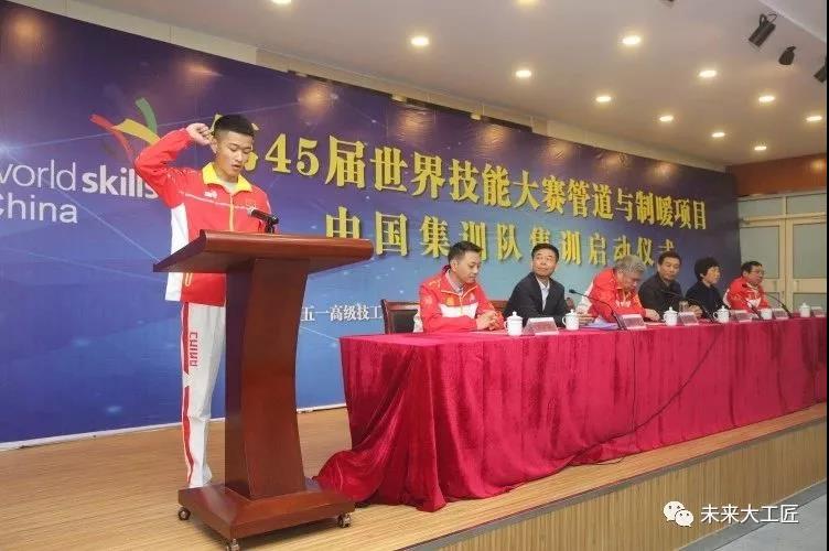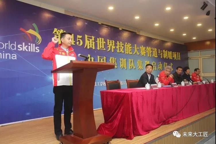 今天,我們將開啟新一階段的第45屆世界技能大賽管道與制暖項目中國集訓隊集訓工作,為出色完成本輪集訓任務,我代表國家集訓隊10名集訓選手在此莊嚴宣誓:我們將——