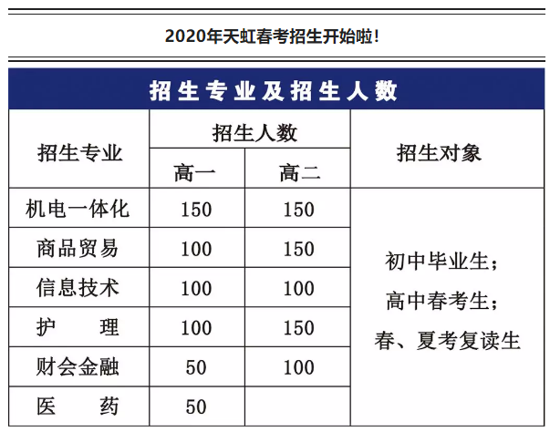 煙臺天虹學院(煙臺天虹職業培訓學院)位于素有“人間仙境”美譽的海濱城市煙臺市中心區,占地面積100畝,建筑面積5萬平方米。是專業從事春季高考教育的全日制國家級重點學校,是山東省財政資金重點建設的省級百強名牌專業學校,是山東省高技能人才培訓基地、煙臺市技師工作站。