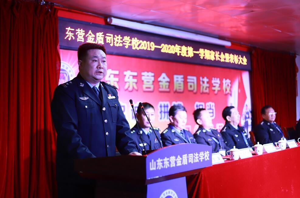 2020年1月6日上午,山東東營金盾司法學校在大禮堂隆重舉行2019-2020學年第一學期期末總結表彰大會暨家長會,對一學期的工作進行全面的總結與回顧,并對涌現出的先進集體和個人進行表彰。學校校長楊萬里、黨支部書記宋國謙、常務副校長劉寶存、副校長史廣國、王周河、政委張河等校領導及中國警察論壇執行主任王馨同志出席大會。會議由李長峰副校長主持。