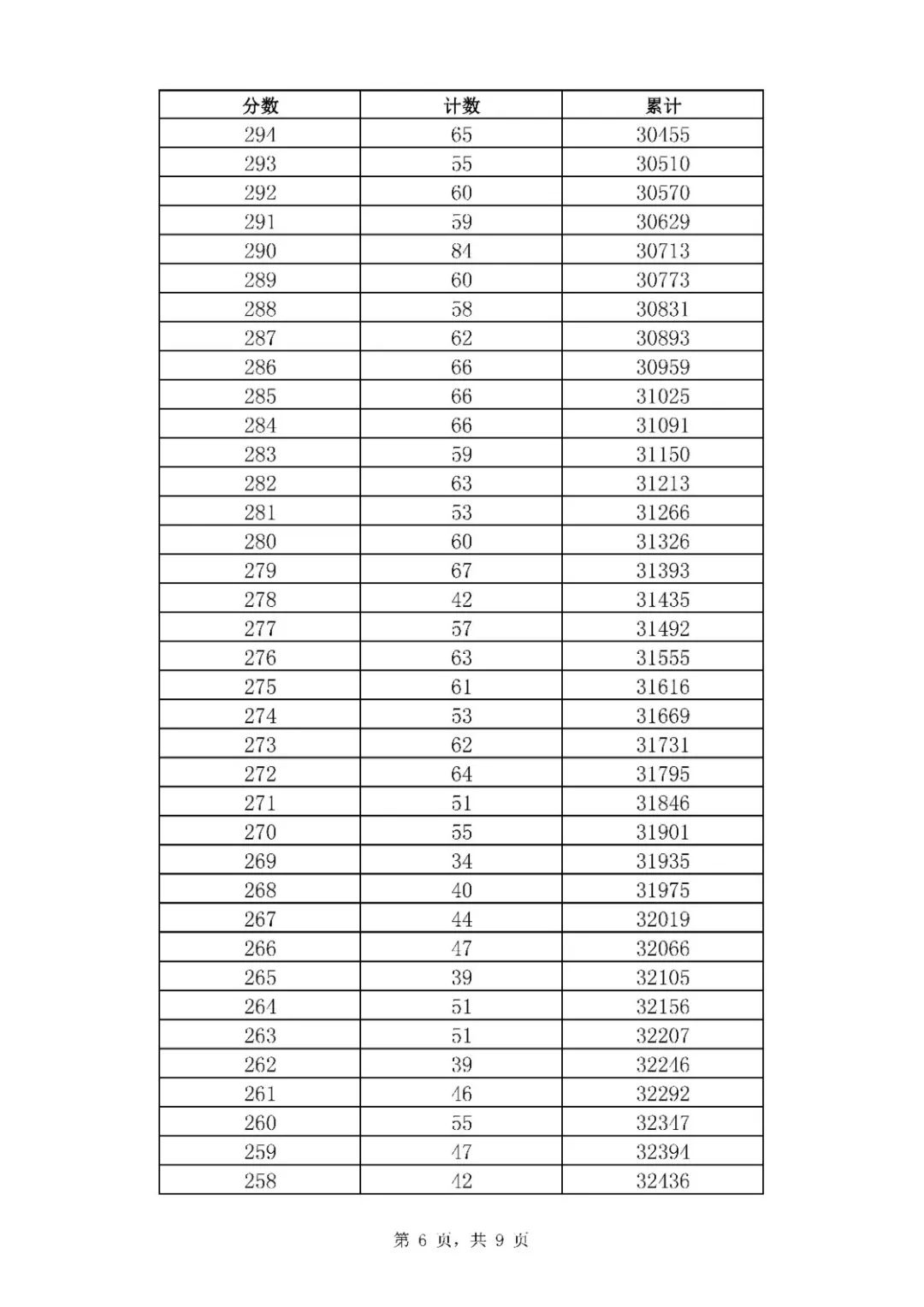 2020年山東濟南中考市內(nèi)七區(qū)一分一段表統(tǒng)計公布(6)