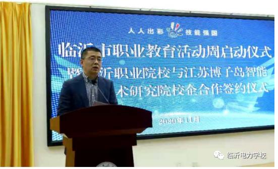 為了弘揚勞動光榮、技能寶貴,進一步提高我市職業院校學生的實踐能力和職業技能水平,培養合格的技術技能人才,11月12日下午,臨沂市2020年職業教育活動周啟動儀式暨臨沂市中職學校與江蘇博子島智能產業技術研究院簽約儀式在臨沂電力學校舉行。來自全市各職業院校100余人參加了啟動儀式。