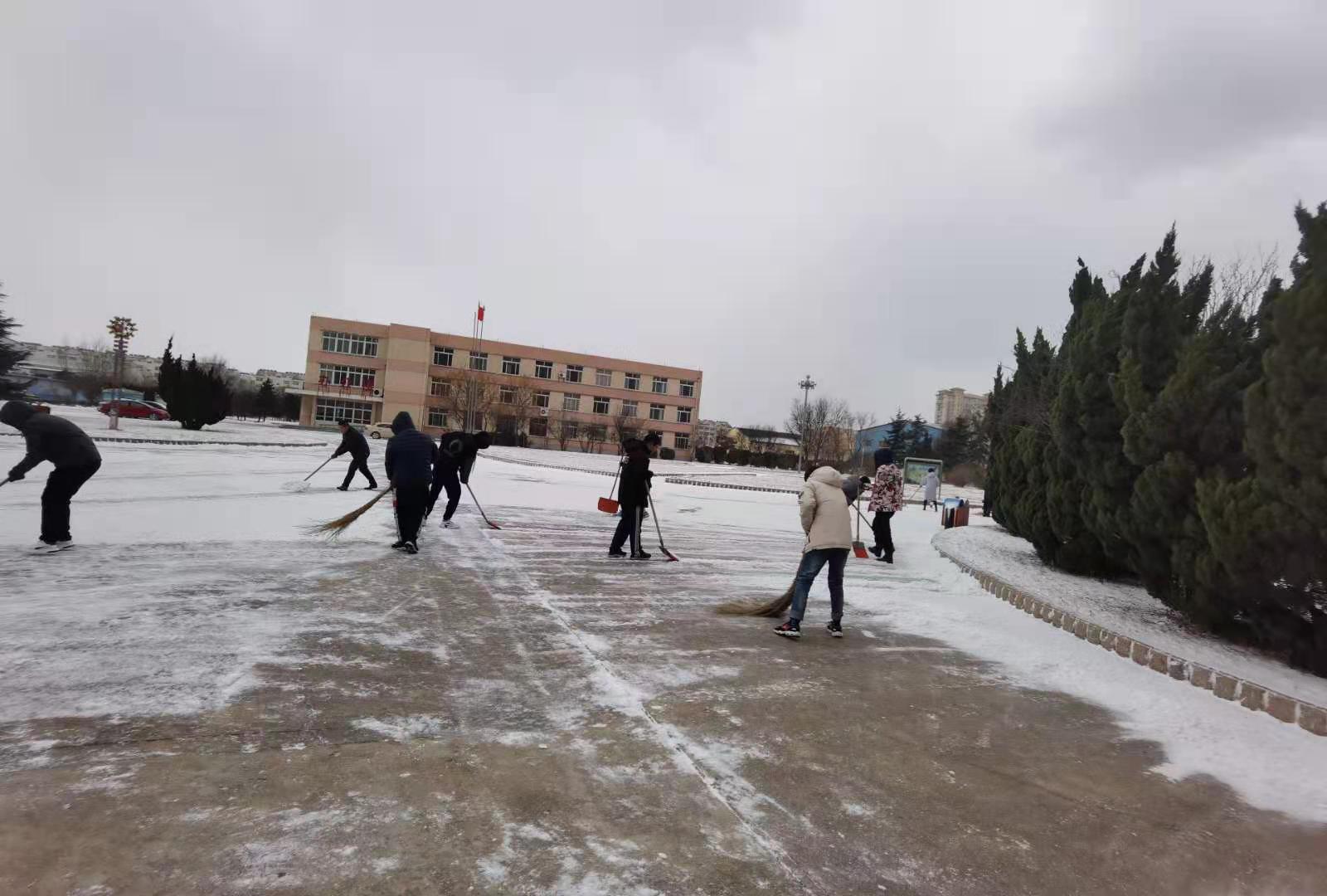 為保證全體師生的出行安全,消除安全隱患。寒風凜冽的清晨,山東龍口礦業集團高級技工學校主任和教師們帶領著學生們一起為鏟除積雪,個個拿著鉄楸和掃帚投入到掃雪勞動中,雖個個手和臉凍的通紅,但這絲毫不影響掃雪的熱情,開始了鏟雪行動,全體齊力查漏補缺,力爭讓校園更干凈、整潔!