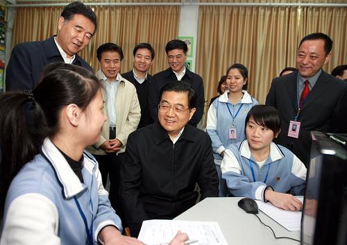 12月21日,中共中央總書記、國家主席、中央軍委主席在廣東省珠海市考察工作。這是在珠海市高級技工學校多媒體技術實訓室,親切勉勵學生刻苦學習,潛心鉆研,努力成為高素質技能型人才。 時值隆冬,南粵大地依然綠意盈盈、生機勃發。 中共中央總書記、國家主席、中央軍委主席在出席慶祝澳門回歸祖國10周年活動后,于12月20日至21日來到廣東省珠海市考察工作。 在中共中央政治局委員、廣東省委書記汪洋等陪同下,深入到企業、研發機構和技工學校,同當地干部群眾共商加快經濟發展方式轉變、提高自主創新能力、實現經濟平穩較快發展大計。 技能型人才在推進自主創新方面具有不可替代的重要作用。專門前往珠海市高級技工學校,親切看望師生,了解技能型人才培養和畢業生就業情況。 一間間實訓室里,學生們正在教師指導下學原理、學操作。在多媒體技術實訓室,同正在進行視頻剪輯練習的學生交談起來,詢問他們學了多長時間、有沒有掌握要領、對學習條件是不是滿意。得知不少學生來自廣東貧困山區,學校免除了他們的學習費用,總書記十分欣慰,叮囑他們一定要珍惜機會、好好學習。在電子測試實訓室,正在這里接受培訓的幾名退役士兵向總書記匯報了自己的學習情況,勉勵他們發揚部隊優良傳統,不斷提高就業本領,更好地適應社會需要。面對圍攏在身邊的技校學生,語重心長地說,沒有一流的技工,就沒有一流的產品。現在我國技術工人特別是高級技工非常匱乏。希望同學們刻苦學習文化科學知識,潛心鉆研專業技能,努力成為高素質技能型人才。 63歲的瑙石是摩天宇中德職業培訓中心的一名德國籍教員。在該中心設在技工學校的實習工廠里,同瑙石親切交談,關切地詢問他在華工作、生活情況,感謝他為推動中國職業技術教育、為增進中德兩國人民友誼作出的貢獻。走到一臺臺機床前,一邊聽介紹,一邊觀看學生操作,還拿起銼刀,親自銼起一個零件。總書記熟練的動作,引來一片熱烈的掌聲。 臨行時,技工學校的師生們擁到路邊,激動地向總書記問好。掌聲、歡呼聲在校園里久久回蕩。