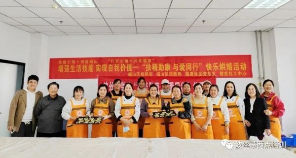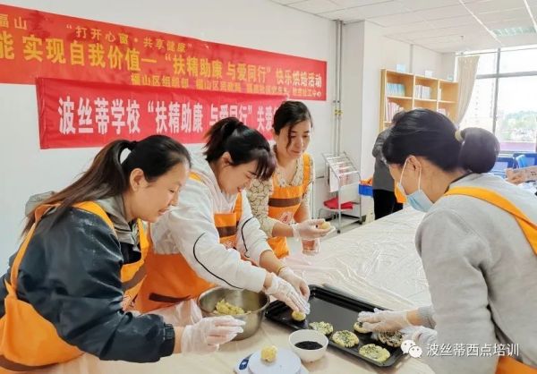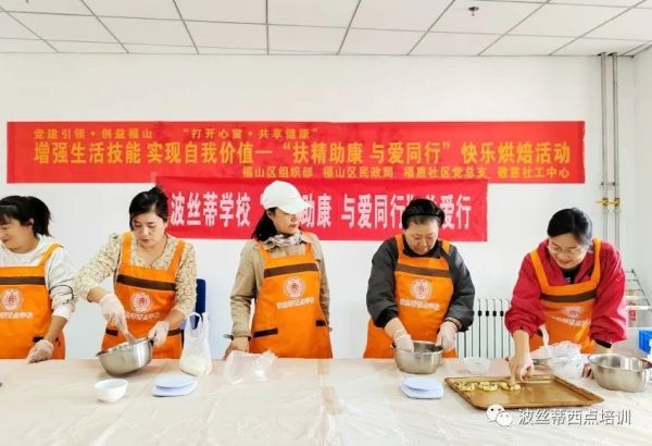 為增強精康人員生活技能,陶冶生活情操,享受生活樂趣。10月20日上午,由福山區組織部、福山區民政局、福惠花園社區、靜慈社工共同組織的“扶精助康,與愛同行”快樂烘焙愛心活動在福山區清揚街道福惠花園社區舉行。波絲蒂西點烘焙學校陳聰校長帶領熊為華、呂廣華兩位烘焙老師一同前往,共同為精神障礙患者的康復愛心活動助力。