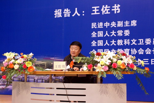 青島濱海學院全體教職工齊聚學校禮堂,聆聽民進中央副主席、全國人大常委、全國人大教科文衛委員會副主任、全國民辦教育協會會長、教授王佐書同志《我們應該怎樣思考這些教育問題》的學術報告,