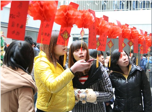 活動(dòng)一開始便吸引了大批同學(xué)前來參加,偌大的西大廳擠滿了人,節(jié)日的氣氛在燈謎活動(dòng)的烘托下,更顯濃郁。現(xiàn)場(chǎng)參與的同學(xué)駐足在燈謎前,絞盡腦汁地思考著燈謎的答案。在現(xiàn)場(chǎng),不時(shí)能看到有的同學(xué)因?yàn)椴鲁鰺糁i答案而歡呼雀躍。