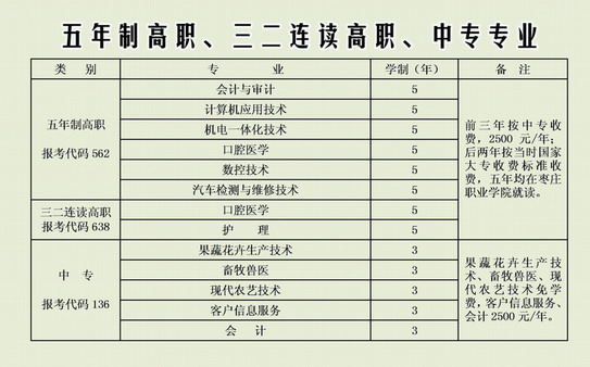 棗莊職業學院(棗莊技術學院)是山東省人民政府批準、教育部備案的專科層次全日制公辦普通高等學院,坐落于棗莊高新技術產業開發區。2008年9月投入使用的生態化、園林式的新校園,總體規劃850畝,已建成521畝,為中央電視臺《狀元360》節目拍攝基地、國家級農民工培訓示范基地、全國職工職業技能實訓基地。