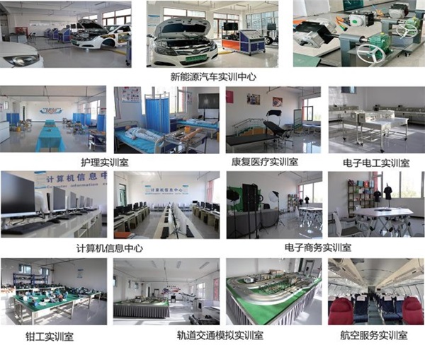 學(xué)校投資500余萬建有全市第一家專用教學(xué)飛機、軌道交通模擬實訓(xùn)室、護(hù)理實訓(xùn)室、康復(fù)醫(yī)療實訓(xùn)室、新能源汽車實訓(xùn)中心、BIM技術(shù)中心、機電機械實訓(xùn)中心、計算信息中心、舞蹈室、鋼琴室、繪畫室、電商直播室等15個專業(yè)實訓(xùn)室,能滿足各專業(yè)的實訓(xùn)要求。