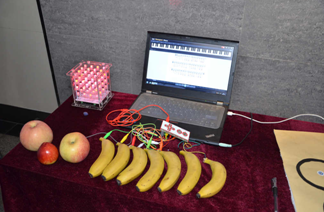一陣悠揚的音樂響起,這是一位愛好音樂的學生在水果鋼琴前演奏。常見的蘋果、香蕉通過幾條細細的電線和一個電路板連接到電腦上,竟能發出如此美妙的音樂。這次展出不僅有2013級呂宵陽制作的水果鋼琴,還有2013級7班張匯參與研制的石墨架子鼓、2014級7班寇世俊主創的魔法城堡等,同學們對這些作品表現出濃厚的興趣。2015級的學弟們一邊看一邊嘟囔“明年我也就能做出來,我應該做的還好”。這是5月13日青島電子學校舉辦職業教育活動周創新成果展中的場景。學校在5月9-13日“職業教育活動周”之際,舉行了學校11個創客中心展出了部分創新成果。在活動現場,學生們精美的創客作品,憨態可掬的機器人表演,匪夷所思的樂器制作,吸引了眾多中小學教師駐足觀賞、體驗。這次活動受到了參加這次活動的青島市中小學教師、校企合作單、及青島電子學校師生以及慕名而來的部分家長一致好評。
