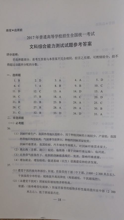 山東技校網 >> 精選題庫 >> 2017年山東高考文綜試題答案