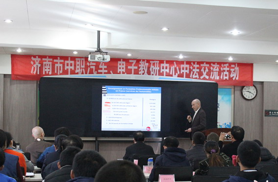 14日上午,法方汽車維修課程教育負責人Bertrand Choquet(貝爾特朗·肖凱)向濟南理工學校教務科以及汽車系的老師們就法國汽車維修課程的設置以及人才培養模式進行了專題報告,為學校汽車維修專業的發展起到了很好地借鑒作用。