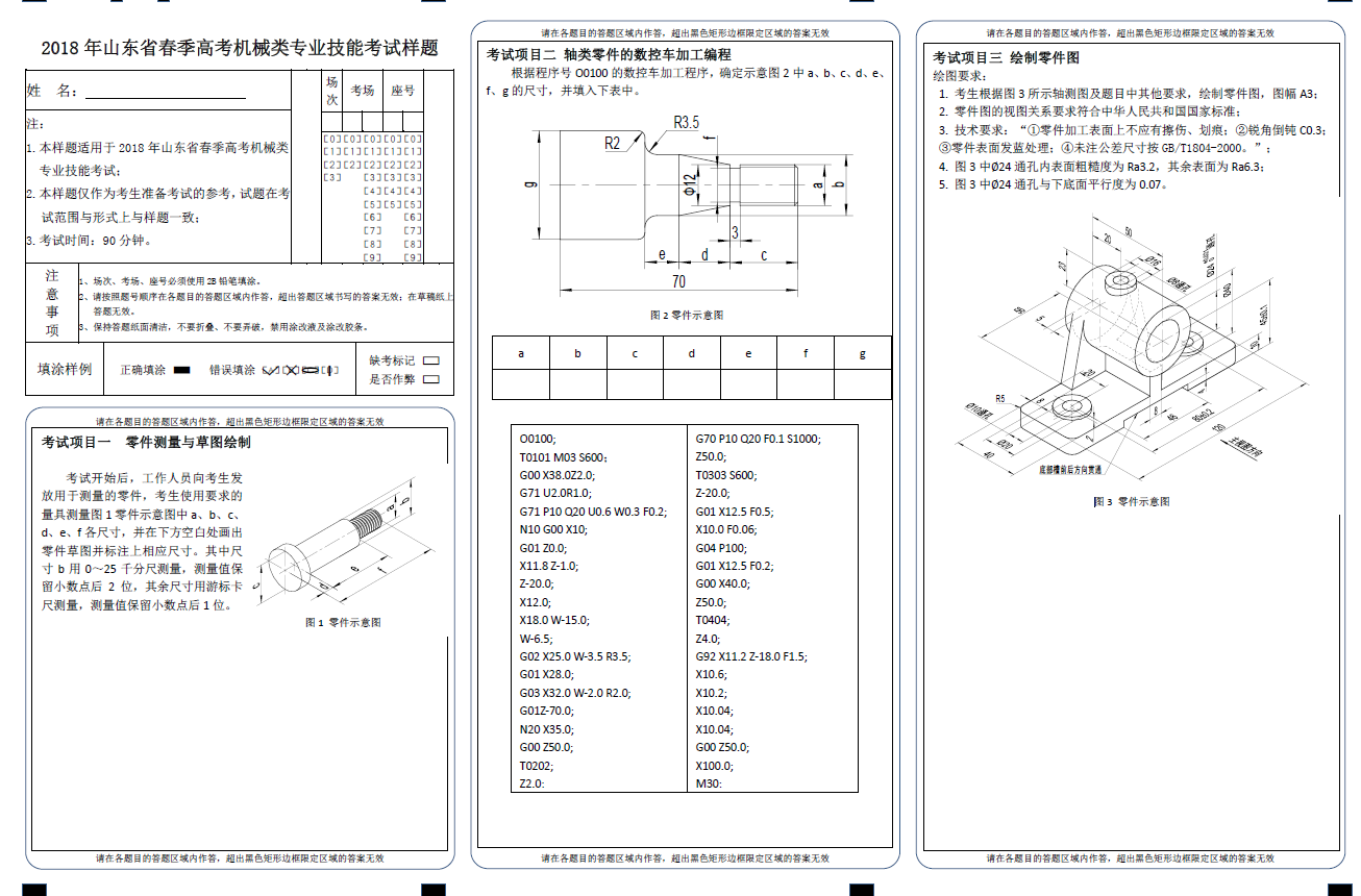 2018年山東省春季高考機械類專業技能考試樣題