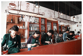 咖啡教學設備采用全球大的咖啡連鎖店星巴克使用的半自動4頭咖啡機、制冰機、操作臺、凈水器,與國際品牌咖啡店接軌。另有2頭咖啡機、磨豆機、法壓壺、虹吸壺、冰滴壺、摩卡壺、比利時壺、越南壺等學習器具。