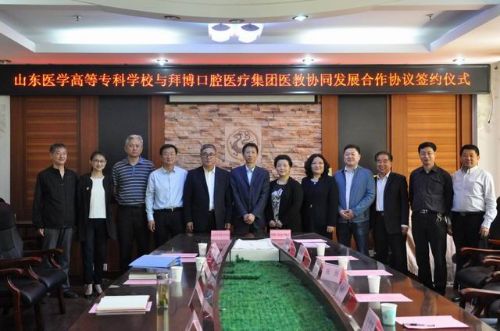 簽約儀式上,舒德峰介紹了山東醫專的辦學情況及口腔醫學系專業建設優勢,表示希望借此合作之際與拜博口腔醫院在師資交流、人才培養、課程開發、“訂單式”培養、實習就業一體化等方面加強交流、深入合作,實現優勢互補、資源共享,共同打造口腔醫學重點專業學科。濟南拜博口腔醫院院長李鐵軍介紹了拜博口腔醫院近幾年的運行發展情況,希望與學校深入聯手合作,共同培養優秀口腔醫學專業人才,促進醫院改革發展,助力健康山東建設。本次簽約是山東醫專借力山東衛生職業教育集團,推動校企合作的又一可喜成果。