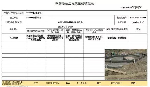 園林工程中很多表格均采用《廣東省房屋建筑工程竣工驗收技術(shù)資料統(tǒng)一用表(2016版)》中的表格,隱蔽工程驗收記錄也不例外。