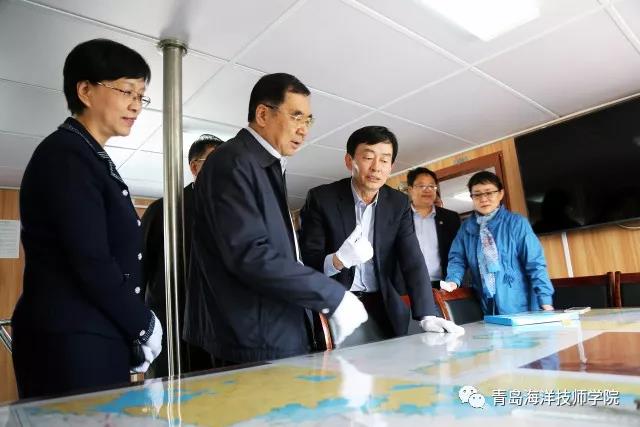 5月8日上午,青島市人大常委會主任宋遠(yuǎn)方、副主任劉圣珍等一行到青島海運職業(yè)學(xué)校(青島海洋技師學(xué)院)視察工作。市人大常委會秘書長楊鵬鳴、辦公廳主任隋志強、副秘書長林萍、研究室主任曲知正、教科文衛(wèi)工作室主任鮑洪義,市教育局副局長王銓、職教處處長李一鷗,市人社局職業(yè)能力建設(shè)處處長孫倩,青島華通集團董事長姜培生、書記劉甘霖、華通教育投資公司總經(jīng)理王力及新聞媒體記者等陪同視察。