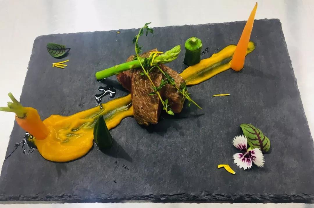 劉智勇老師參賽作品《碳烤牛菲力配有機時蔬》、《香煎大蝦配青檸芥末醬》
