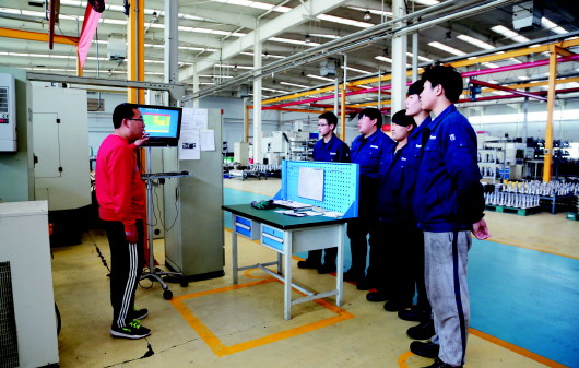 城陽職教中心學校副校長王建國說,實行崗位定制模式后,學校圍繞企業需求進行調整,校企共同確定課程、制定人才培養方案。“2016年,我校第一屆崗位定制‘青特學徒班’單獨進行了招生組班,學校為其配備了一支優秀的教師團隊,青特集團選派技術骨干到校授課,實行學校老師和企業技術骨干‘雙導師制’,還創新了課程內容。”