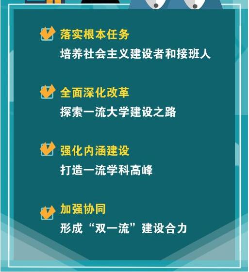 以習近平新時代中國特色社會主義思想為指導,深入貫徹落實黨的十九大精神,緊緊圍繞統籌推進“五位一體”總體布局和協調推進“四個全面”戰略布局,全面貫徹落實黨的教育方針,以中國特色世界一流為核心,以高等教育內涵式發展為主線,落實立德樹人根本任務,緊緊抓住堅持辦學正確政治方向、建設高素質教師隊伍和形成高水平人才培養體系三項基礎性工作,以體制機制創新為著力點,全面加強黨的領導,調動各種積極因素,在深化改革、服務需求、開放合作中加快發展,努力建成一批中國特色社會主義標桿大學,確保實現“雙一流”建設總體方案確定的戰略目標。