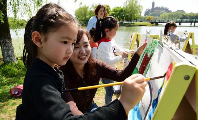 ▲ 4月10日,江蘇省鎮江市和平路街道金泉社區聯合金山水城幼兒園,開展“美麗春天畫中來”活動,志愿者帶著小朋友來到金山湖景區寫生,指導孩子們描畫春天的美麗景色,感受風景如畫的春色。(石玉成/攝)