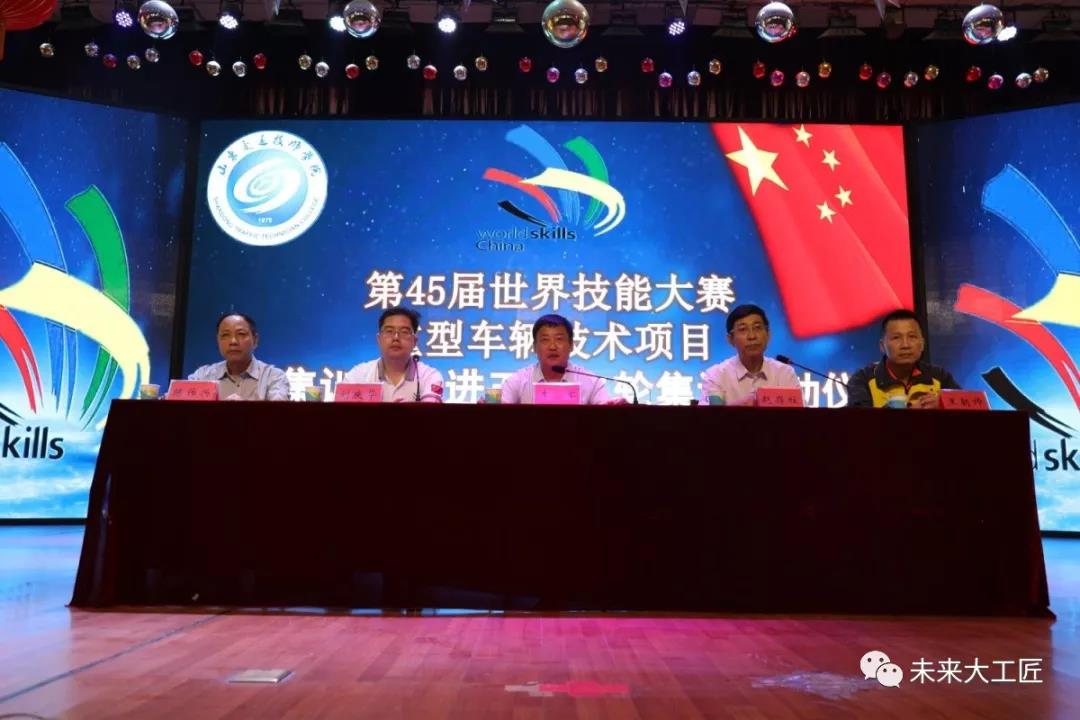 8日上午,第45屆世界技能大賽重型車輛技術項目國家集訓隊九進五選拔第二輪開訓儀式在山東交通技師學院舉行。