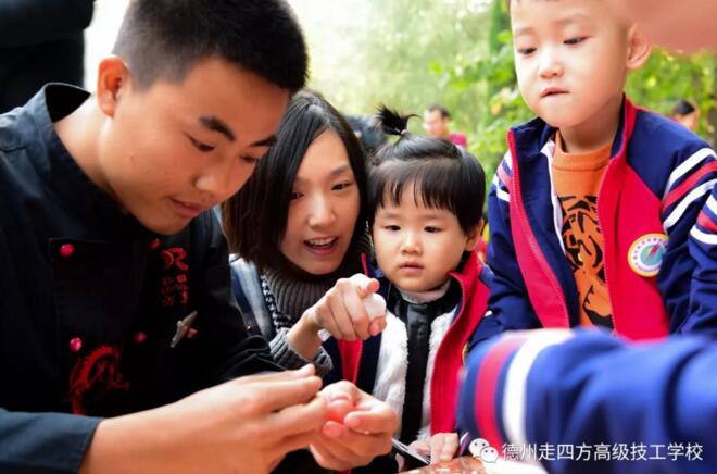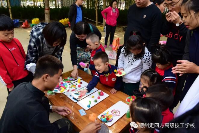 10月13日,為迎接即將到來的2018年全民終身學習周,在區教育局的倡導下,德州走四方高級技工學校烹飪系師生走進躍華幼兒園,帶領家長和孩子們一起體驗“面塑”和“果醬畫”的制作過程,近距離展示職業教育的魅力。
