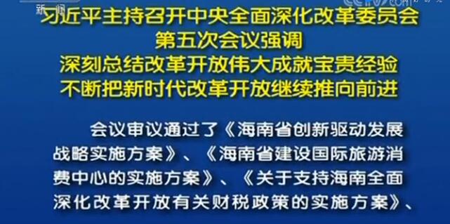 會議審議通過了《海南省創新驅動發展戰略實施方案》、《海南省建設國際旅游消費中心的實施方案》、《關于支持海南全面深化改革開放有關財稅政策的實施方案》、《關于支持海南全面深化改革開放綜合財力補助資金的管理辦法》、《關于調整海南離島旅客免稅購物政策工作方案》、《加快完善市場主體退出制度改革方案》、《深化政府采購制度改革方案》、《國家職業教育改革實施方案》、《關于加強縣級融媒體中心建設的意見》、《關于深化改革培育世界一流科技期刊的意見》、《關于推進基層整合審批服務執法力量的實施意見》、《關于加強和改進出版工作的意見》、《國家組織藥品集中采購試點方案》、《關于全面推行行政執法公示制度執法全過程記錄制度重大執法決定法制審核制度的指導意見》和《“街鄉吹哨、部門報到”——北京市推進黨建引領基層治理體制機制創新的探索》。