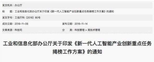 11月14日,工信部發布關于印發《新一代人工智能產業創新重點任務揭榜工作方案》的通知,啟動了人工智能產業創新重點任務揭榜工作,以下稱“人工智能揭榜工作”。