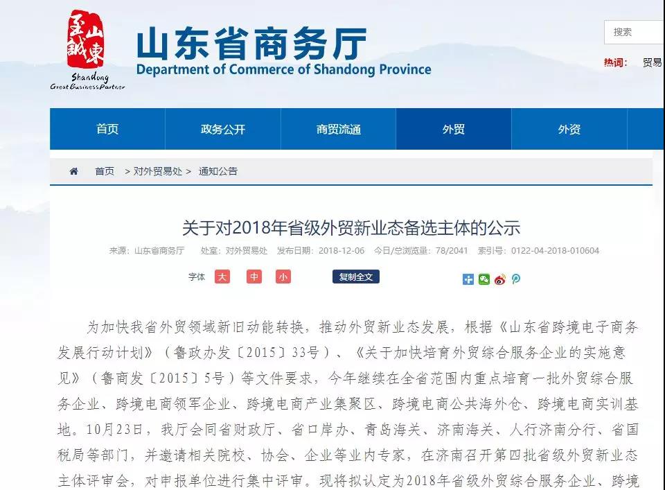 為加快山東省外貿(mào)領(lǐng)域新舊動能轉(zhuǎn)換,推動外貿(mào)新業(yè)態(tài)發(fā)展,根據(jù)《山東省跨境電子商務(wù)發(fā)展行動計劃》(魯政辦發(fā)〔2015〕33號)、《關(guān)于加快培育外貿(mào)綜合服務(wù)企業(yè)的實施意見》(魯商發(fā)〔2015〕5號)等文件要求,2018年繼續(xù)在全省范圍內(nèi)重點培育一批外貿(mào)綜合服務(wù)企業(yè)、跨境電商領(lǐng)軍企業(yè)、跨境電商產(chǎn)業(yè)集聚區(qū)、跨境電商公共海外倉、跨境電商實訓(xùn)基地等新業(yè)態(tài)主體。10月23日,省商務(wù)廳會同省財政廳、省口岸辦、青島海關(guān)、濟南海關(guān)、人行濟南分行、省國稅局等部門,并邀請相關(guān)院校、協(xié)會、企業(yè)等業(yè)內(nèi)專家,在濟南召開了第四批省級外貿(mào)新業(yè)態(tài)主體評審會,對申報單位進行了集中評審。