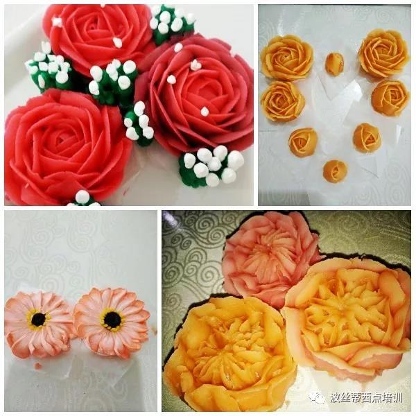 第一天:了解韓式裱花的由來、特點以及原料的選擇,裱花工具的介紹和使用說明,(花嘴、裱花袋、花剪、轉(zhuǎn)臺、抹刀等···)