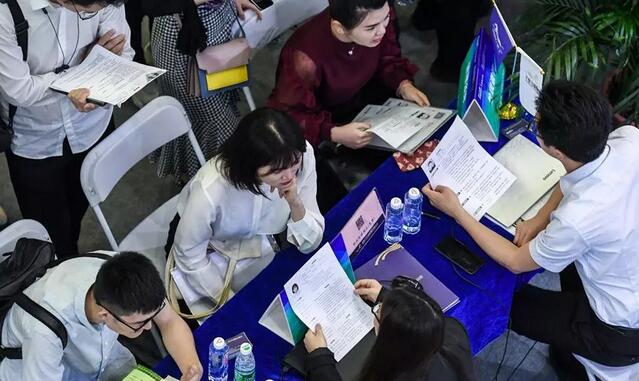4月14日,在第十七屆中國國際人才交流大會(huì)設(shè)置的招聘會(huì)上,求職者與用人單位工作人員交流。當(dāng)日,第十七屆中國國際人才交流大會(huì)在深圳啟幕,來自50多個(gè)國家和地區(qū)的4000多家專業(yè)機(jī)構(gòu)和組織、4萬余名海內(nèi)外政府代表、專家學(xué)者、高端人才應(yīng)邀參展參會(huì)。新華社記者 毛思倩 攝