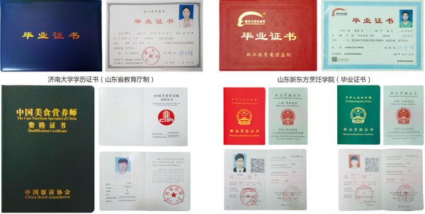 山東新東方烹飪學院與濟南大學聯合辦學,強強聯手,實施“技能+學歷”教育。可在本校考點考取廚師資格證,免去學生獨自報名、找考場的不必要麻煩,學校統一組織考試,讓在校學生能夠順利取得相應廚師等級資格證書。在考取技能證書的同時可獲得國家承認的大中專學歷考取服務,為就業增添“砝碼”。