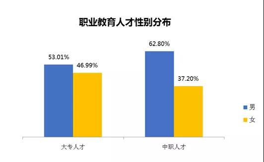 調查同時從人才供需關系上發現,當前大專和中等職業教育人才的就業市場景氣指數(即CIER指數 )分別為3.70和2.30,均高于全國平均水平(1.68)。即1個大專學歷的求職者擁有3.7個崗位機會,1個中職學歷的求職者擁有2.3個崗位機會,表明職業教育人才的就業景氣度較高。另一項數據顯示,當前投遞面向大專和中等職業教育學歷崗位的求職者中,這兩類人才占42.92%,其余為高中、初中、本科等其他學歷人才。這意味著,與市場需求相比,作為目標群體的職業教育人才供給更顯不足。