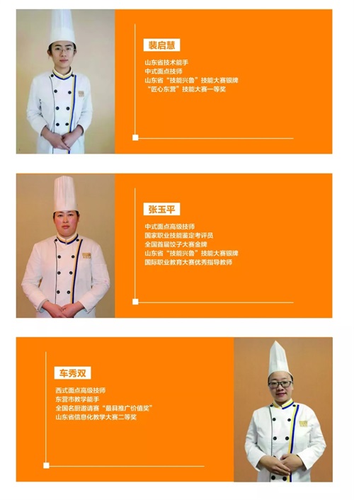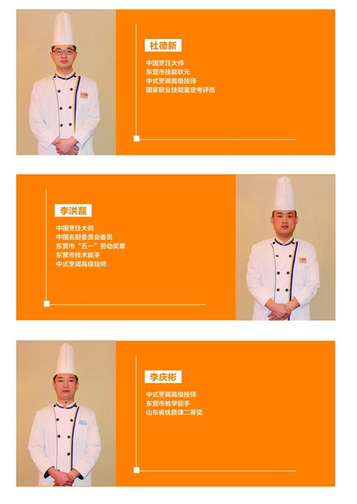 烹飪教學團隊為山東省重點支持的省級教學團隊,由中國烹飪大師、全國烹飪大賽金牌指導特級教師、齊魯名師、全國行業大賽獲獎老師、省首席技師和省技術能手組成。技術力量雄厚,授課經驗豐富,教學成果豐碩。長期參與酒店經營與管理,掌握最新制作技術和工藝流程,技術研發能力強,能夠使學員迅速掌握各類烹飪技藝和傳統絕活。