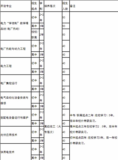 培養具有從事火力發電及其它企業熱力系統和熱力設備運行與檢修等工作能力的應用型中等專業技術人才。