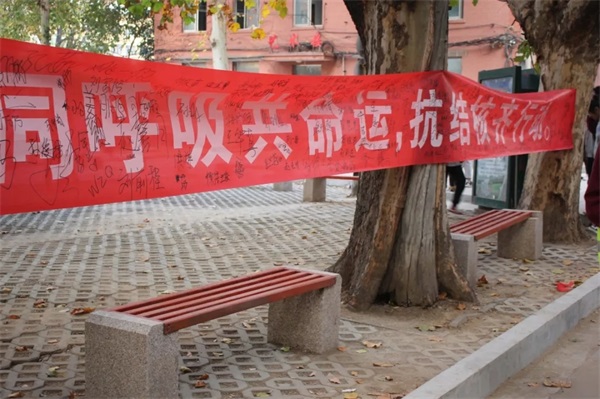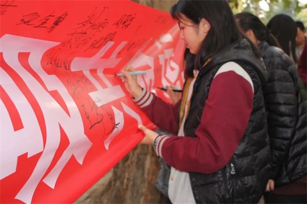 通過醒目的條幅簽字方式,讓同學(xué)們意識到抗結(jié)核不是說說而已,而是要付諸行動。同學(xué)們也紛紛向前寫下自己的名字,發(fā)表自己的決心。預(yù)防肺結(jié)核,從身邊小事做起,從你我做起。