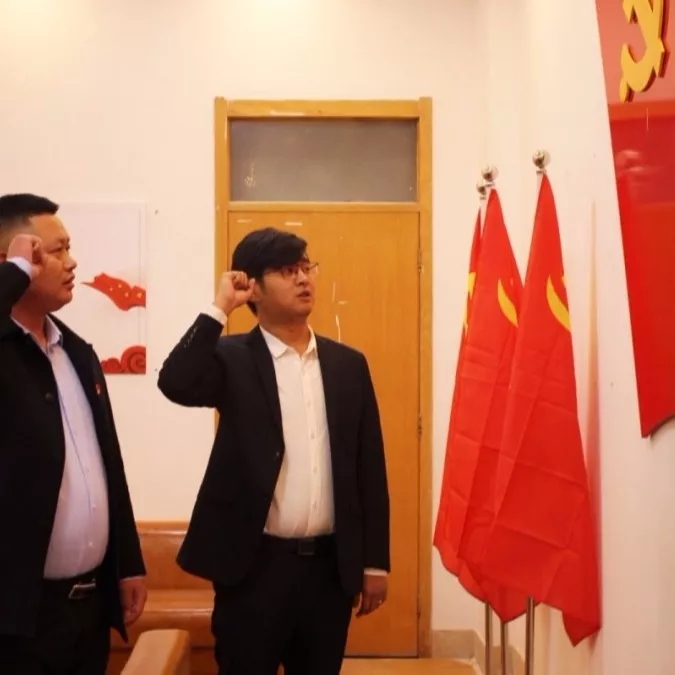 陳猛同志來濟南應用技術職業中等專業學校已經多年,工作一直兢兢業業,是學校最早提交入黨申請書的教職工。徐延濤同志領讀誓詞,并為陳猛同志佩戴黨徽。郭謙書記表示:希望該同志今后繼續認真學習黨的理論,履行黨員的義務,積極工作,為學校的發展奉獻力量。