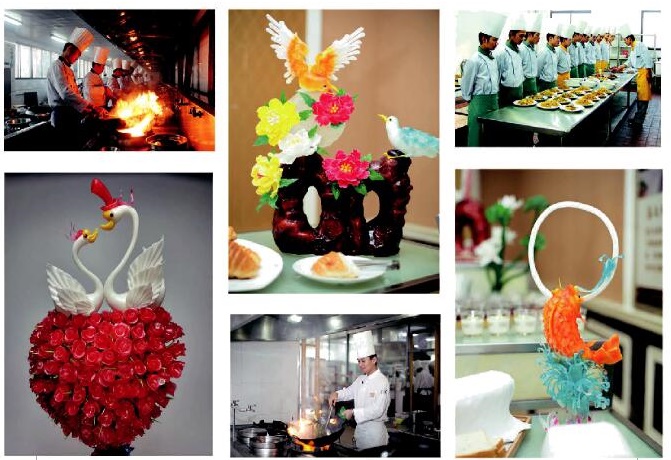 中餐烹飪方向除學習必需的基礎文化課外,重點學習《烹飪原料與初步加工技術》《烹飪工藝與熱菜制作》《冷菜制作與食品雕刻技術》等專業課程,實訓采用實景化、理實一體化教學模式,從藍海酒店集團千款菜品庫精心挑選數百款酒店流行菜品用于教學,同時學習高檔花色拼盤及雕刻技術,培養學生系統掌握中餐烹飪專業理論知識,具備菜品烹調技術和酒店主要運營菜品的制作能力,能勝任高星級酒店、大中型飯店熱菜烹調等工作。