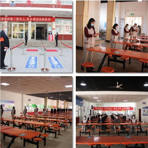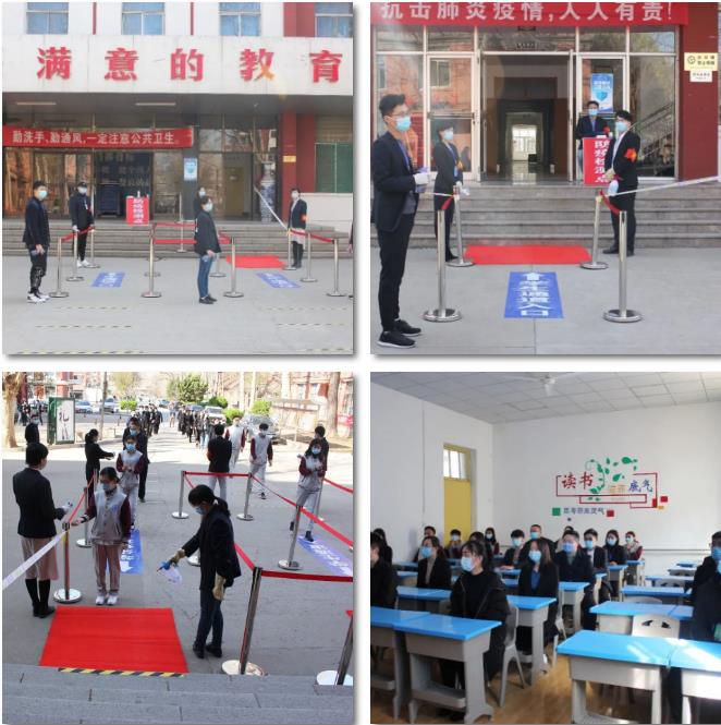 學生進入教學樓、實訓樓,保持距離排隊,依次進行體溫檢測、鞋底消毒。進入教室后,單人單桌,全程佩戴口罩。