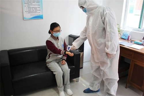 在整個期間,發現體溫超過37.3度人員及時登記并與醫學隔離室負責人溝通辦理交接,并啟動《濟南應用技術職業中等專業學校新冠病毒感染應急處置預案》。