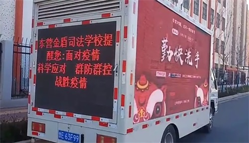 學(xué)校防疫應(yīng)急隊(duì)還派出LED宣傳車赴振華商廈、百貨大樓、萬(wàn)達(dá)廣場(chǎng)、東營(yíng)區(qū)政府等地滾動(dòng)播出疫情實(shí)時(shí)情況,向廣大市民普及有關(guān)科學(xué)防控知識(shí),為東營(yíng)防疫工作貢獻(xiàn)綿薄之力。