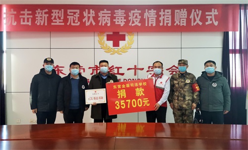 山東東營金盾司法學校第一時間將這筆善款捐贈給東營市紅十字會,助力東營防疫,向東營“疫”線工作人員表達最崇高的敬意。在本次捐款前學校防疫應急服務隊已在各自崗位上奮斗了二十多天,并以無償獻血、捐款捐物的方式助力防疫工作。本次捐款掀起了山東東營金盾司法學校助力防控工作的又一次高潮。