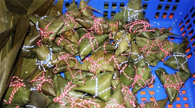 不一會(huì)兒,一片片翠綠的粽葉,一粒粒晶瑩的糯米,在大家共同的努力下,瞬間變成了各式各樣的粽子。