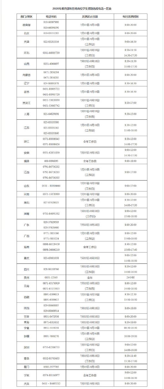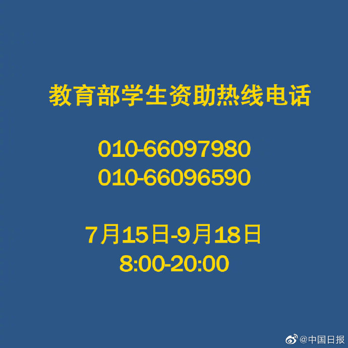 今年因新冠肺炎疫情,低收入和經濟困難家庭子女上學的經濟壓力更加凸顯。今天,教育部正式開通全國高校學生資助熱線電話:010-66097980、010-66096590,開通時間為7月15日至9月18日每天8:00-20:00,開通時間是歷年來最長的一年!周知!