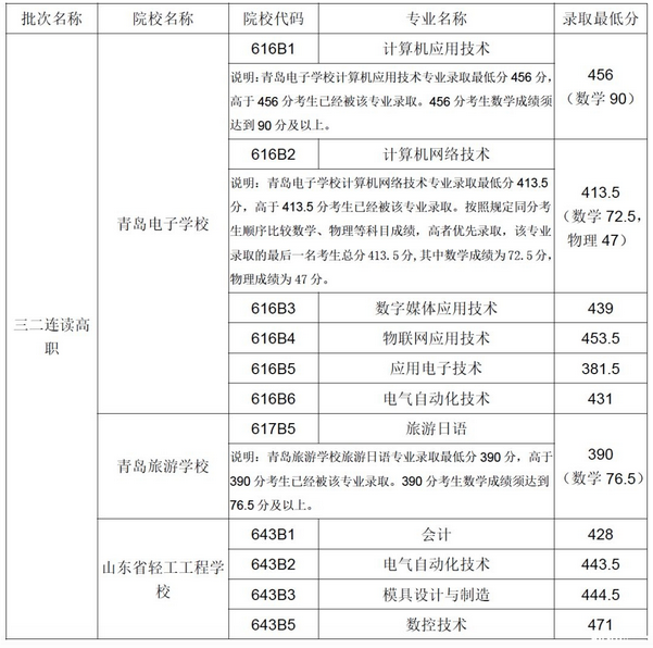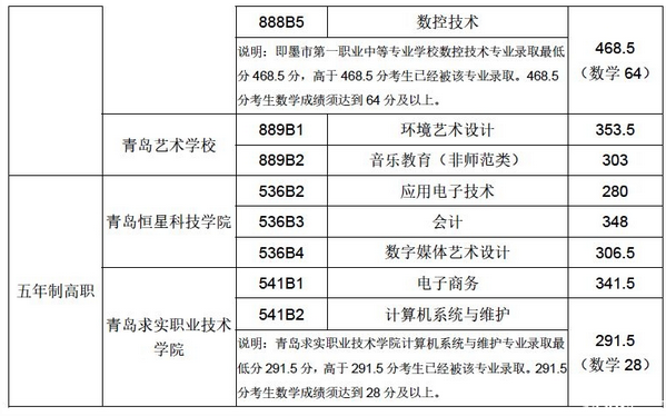 一、青島市招生學(xué)校五年制高職、三二連讀高職滿額專業(yè)錄取最低分。