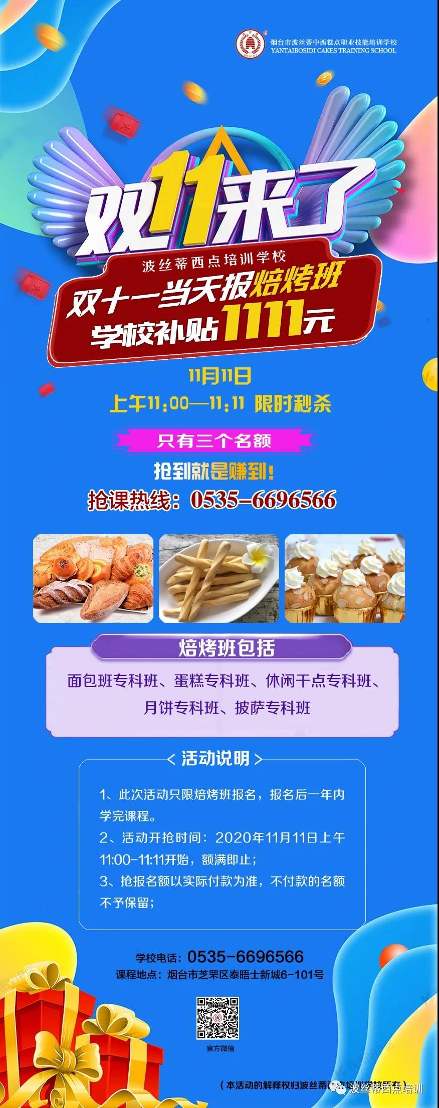 雙十一來嘍,報焙烤班,學校補貼1111元!