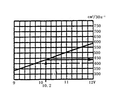 測量時若蓄電池電壓為12.2V,則燃油泵電壓比蓄電池電壓低兩伏,小供油量為430cm3/30秒。