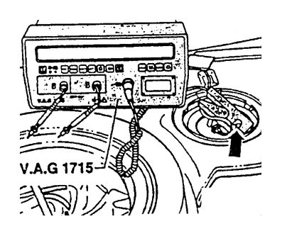 8)燃油泵供油量取決于蓄電池電壓,把帶輔助接線V.A.G1594的萬用表接到汽車蓄電池上。