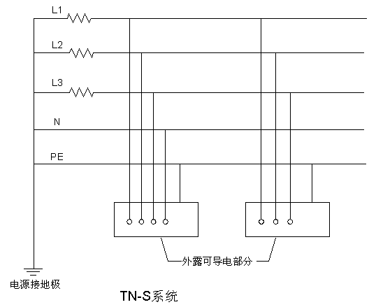 TS-S系統(tǒng)即三相五線制 N:中線 PE:保護線