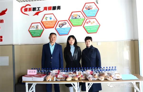 4月14日上午,波絲蒂西點培訓學校陳紅林校長帶著剛剛出爐的面包來到位于大悅城的戶外勞動者“愛心驛站",為驛站送去一份甜蜜的溫暖。
